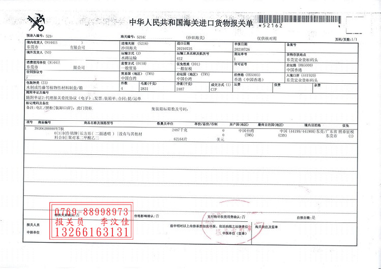 最后,通过PET板进口清关案例,想必大家对东莞宏业码头清关流程都有了一个基本的了解,如果小伙伴现在有从台湾货物进口,可以私信小编看看是否您的货物属不属于ECFA关税优惠目录范围,清关口岸是否可以换到东莞宏业码头来更节省进口物流费.